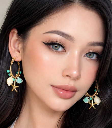 گوشواره حلقه ای دریایی با آبکاری طلایی