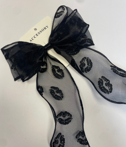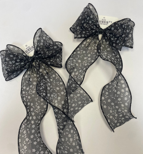 گیره پاپیونی مشکی گلدار با دنباله بلند