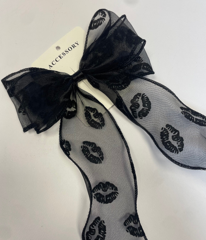 گیره پاپیونی مشکی طرحدار با دنباله بلند