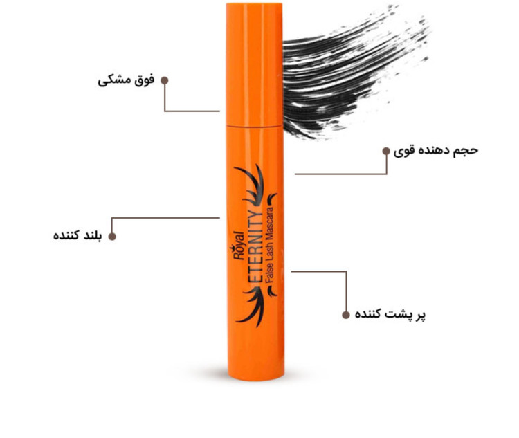 ریمل رویال اترنیتی نارنجی روی مژه ها بخاطر بافت بسیار نرم و سبک نمای مخملی و پرحجمی به مژه ها می بخشد به همین جهت از این ریمل میتوان بر آرایش های حرفه ای و فوق خاص استفاده کرد.